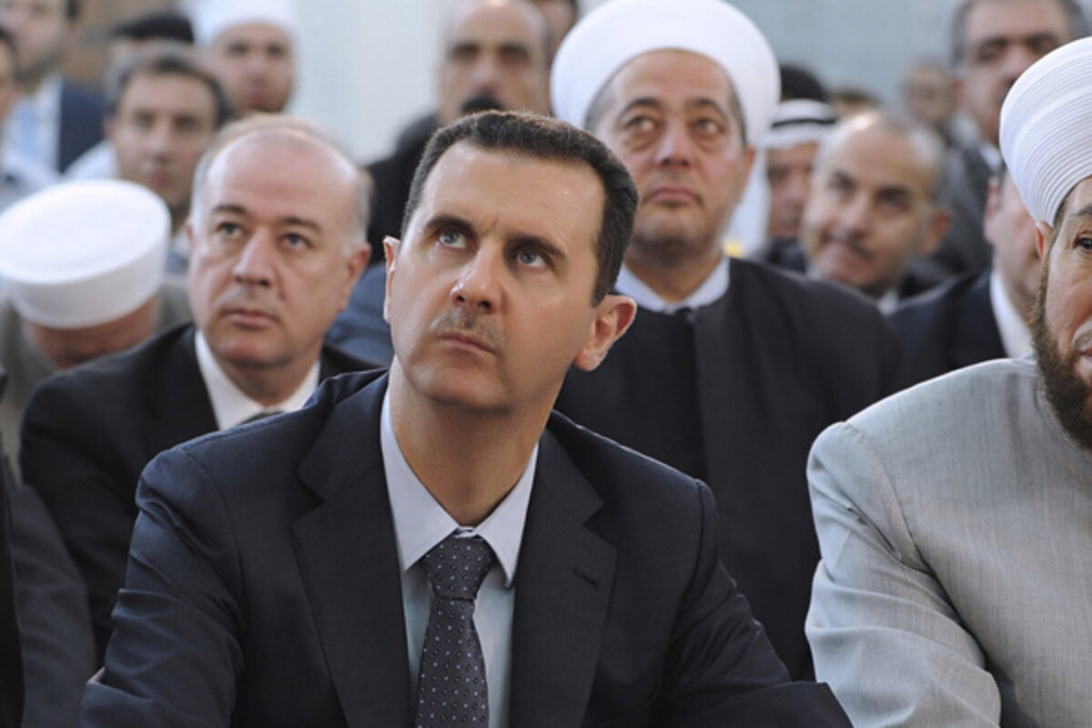 Syrian state TV broadcast footage showing聽Assad聽praying at the city's Rihab al-Hamad mosque, a relatively small mosque in al-Muhajireen district only few hundred yards from the presidential palace.