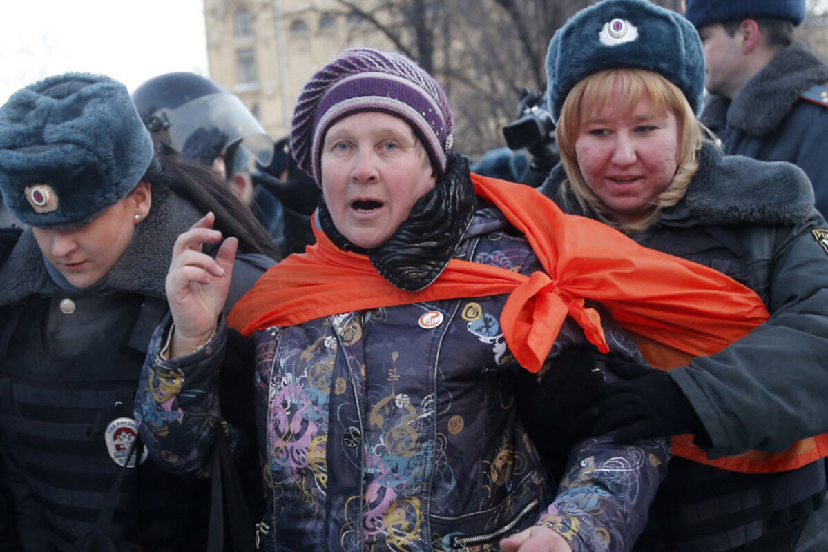 About 2,000 people turned out on Saturday for a rally which did not have approval from city authorities and demanded an end to Putin's 13-year rule before riot police detained four opposition leaders.