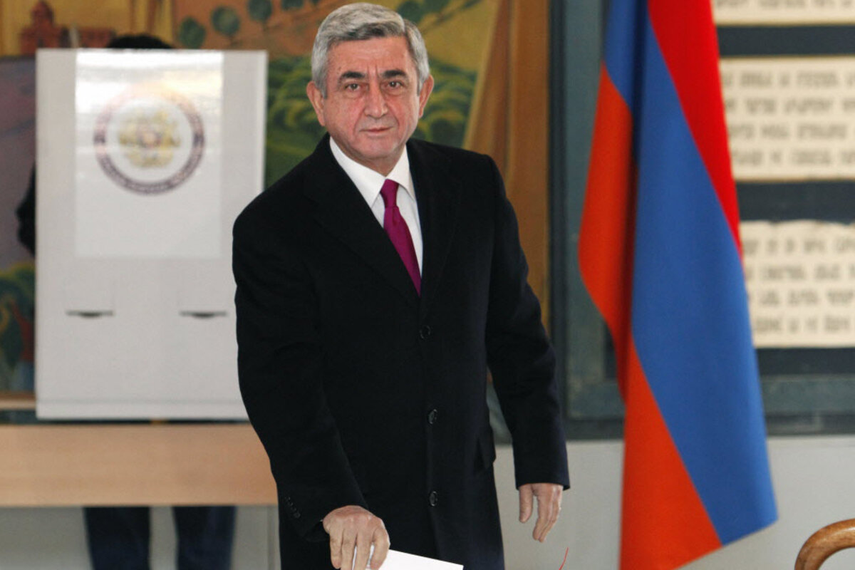 Armenian President Serge Sarkisian, who has overseen a modest economic recovery in his country, was re-elected in a national election on Monday, according to an exit poll.