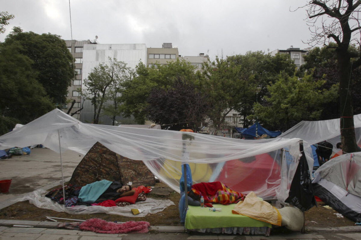 Taksim Square itself returned to normal right after the end of the police operation early Wednesday. Traffic returned, the protest banners and flags were taken down, and cafes set up their chairs and tables outside again. At night, demonstrators still spill out from the park down the steps, while riot police keep watch from the edges.