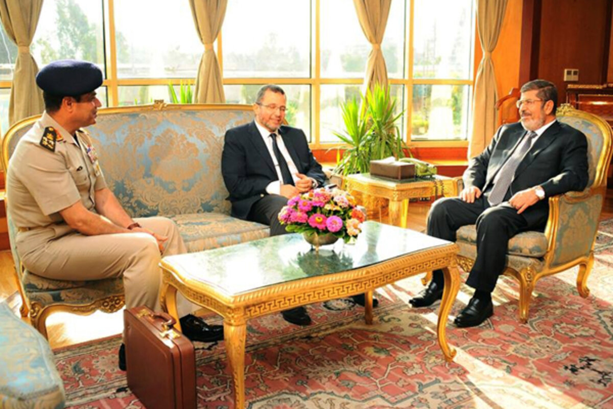 The president's office said Morsi was meeting chief-of-staff General Abdel Fateh al-Sisi and Prime Minister Hisham Kandil for the second straight day.