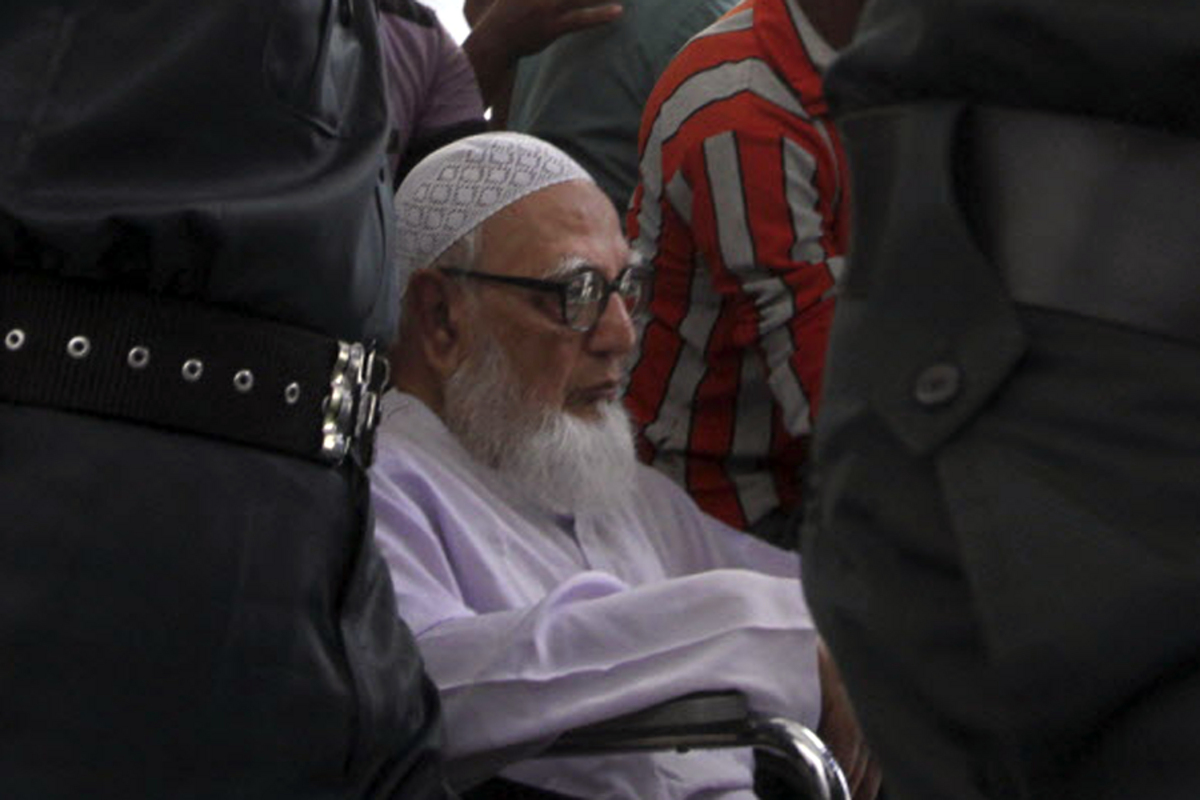 A 91-year-old former chief of an Islamic party in Bangladesh was sentenced to 90 years in jail on Monday for crimes against humanity during the country's 1971 independence war, angering both supporters who said the trial was politically motivated and opponents who said he should be executed.