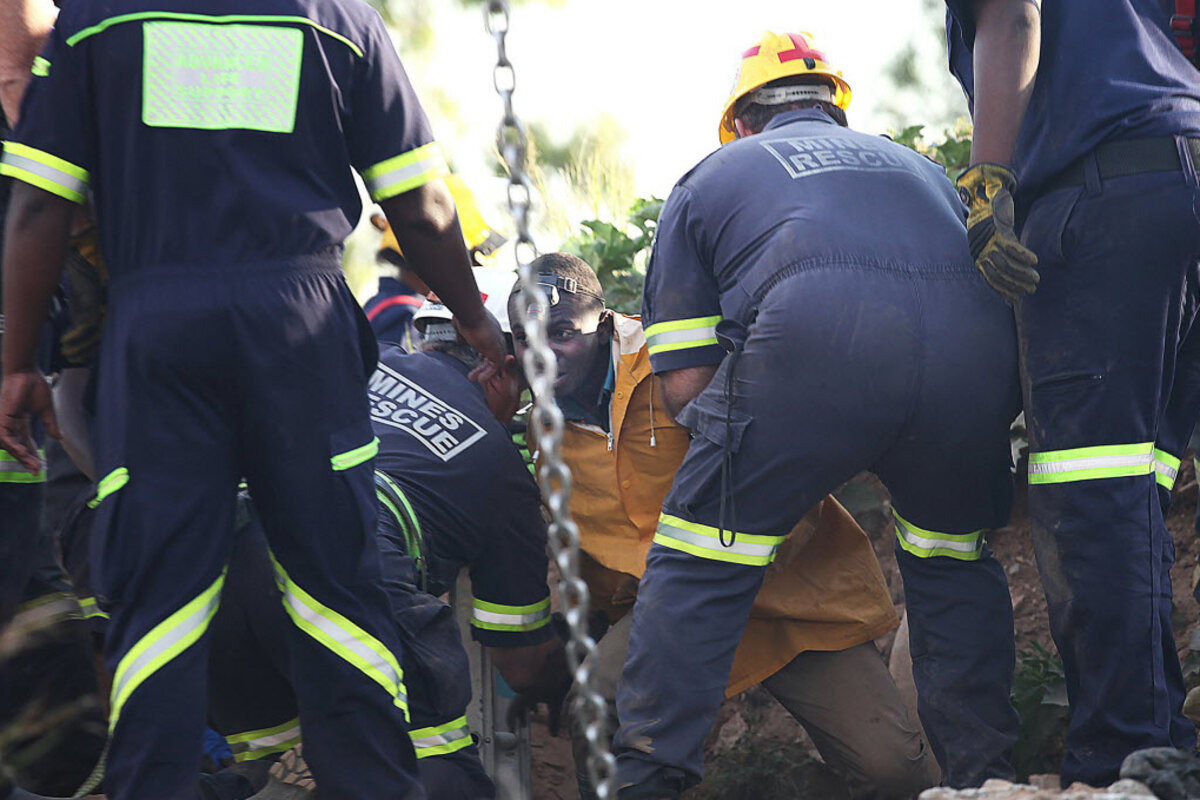 Some of those who came out were dehydrated but in good spirits, Du Plooy said. Earlier, rescue vehicles and equipment were brought to the site to stabilize the ground before the rescue operation began.