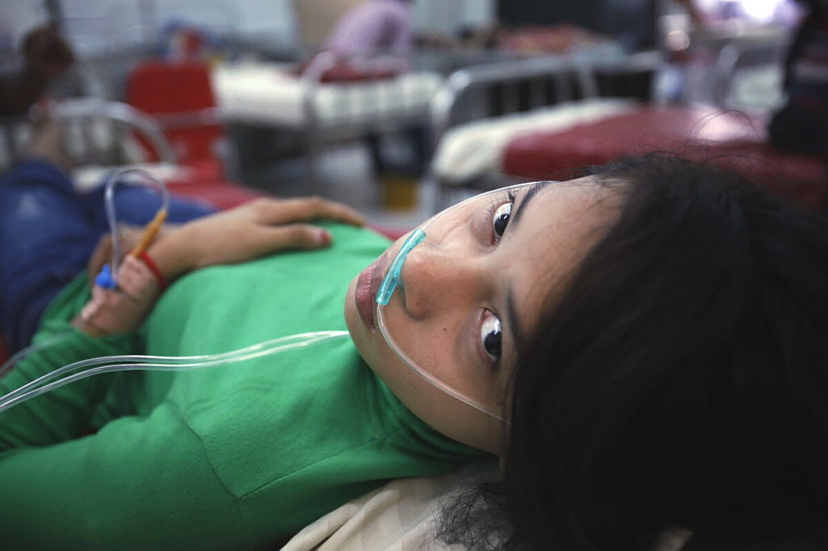 Nguon Sarith, 30, who was hooked up to an intravenous drip at a hospital in the capital, described her symptoms and said she did not know the cause, but suspected it may have been food poisoning.
