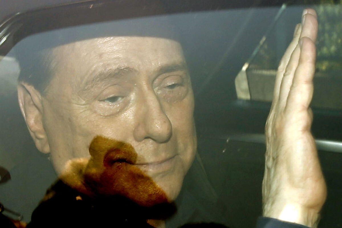 Berlusconi thrust his hand from a car as he was being driven away from facility and a political supporter waiting at the gate grabbed his hand and shook it. The window was then rolled up and the media mogul waved as he was driven away.