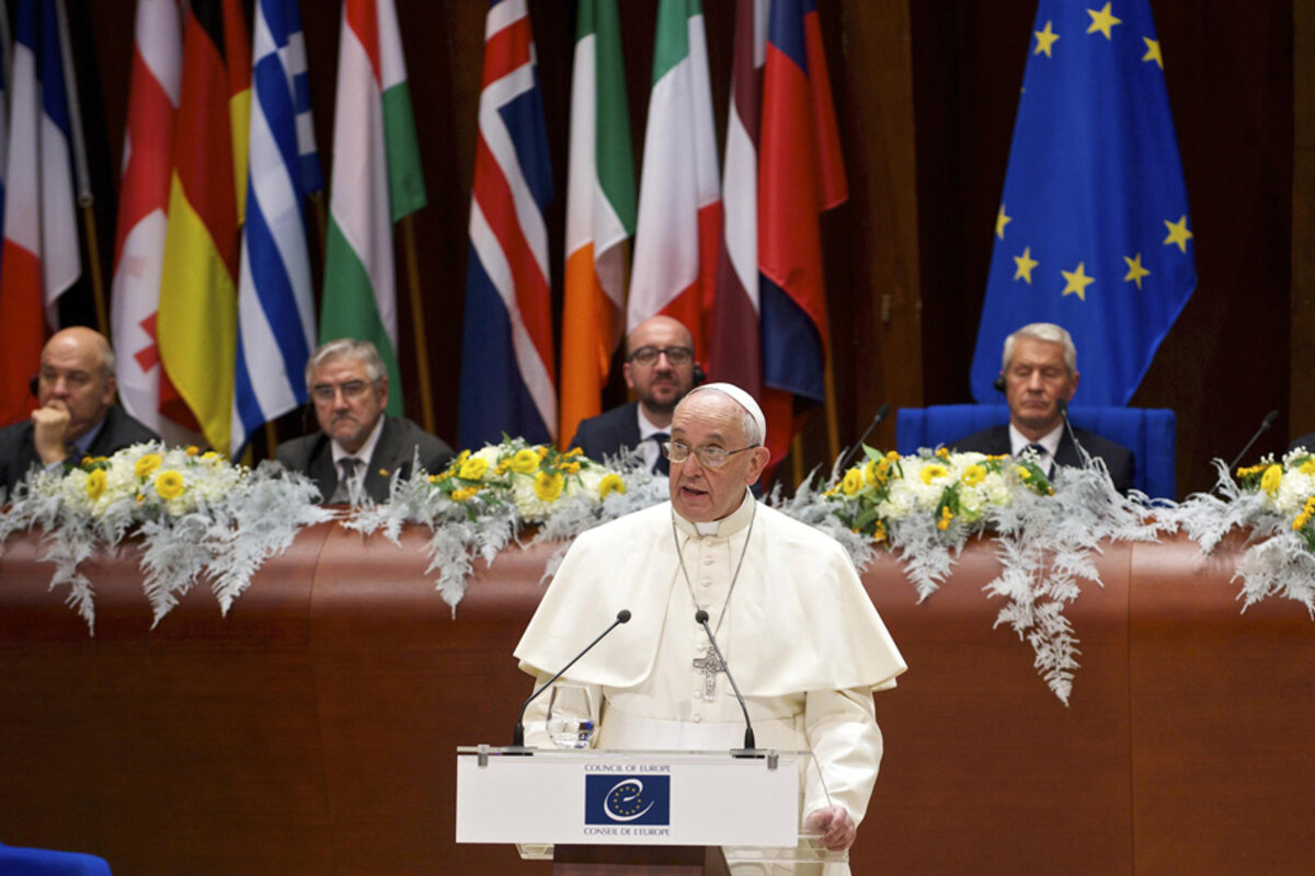 On Tuesday, Francis warned that the absence of a coherent EU migration policy "contributes to slave labor and continuing social tensions." He called for Europeans to enact legislation that ensures immigrants are accepted and to adopt "fair, courageous and realistic policies" toward their countries of origins, to help them resolve the conflicts that fuel migration "rather than adopting policies motivated by self-interest, which increase and feed such conflicts."