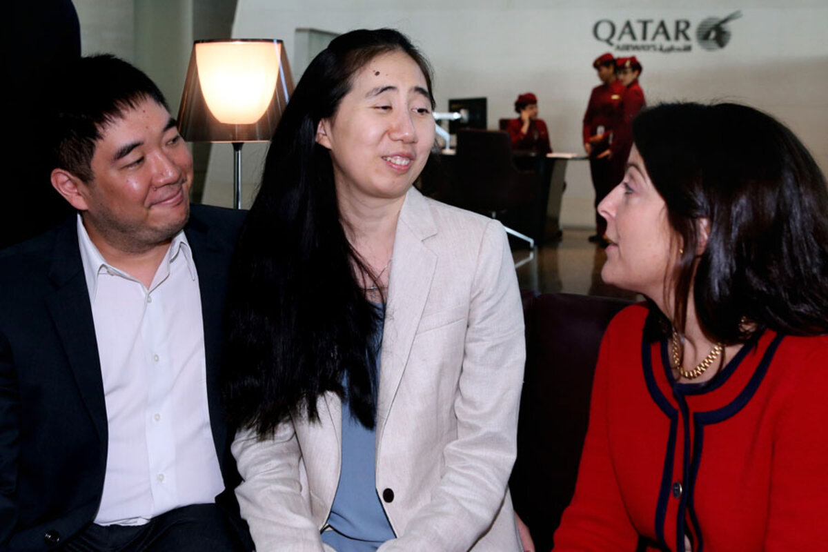 Matthew and Grace Huang boarded a flight at the airport in Doha and are bound for their home in Los Angeles, said a statement on the website of the California Innocence Project, an organization that works to win the release of wrongfully convicted inmates.