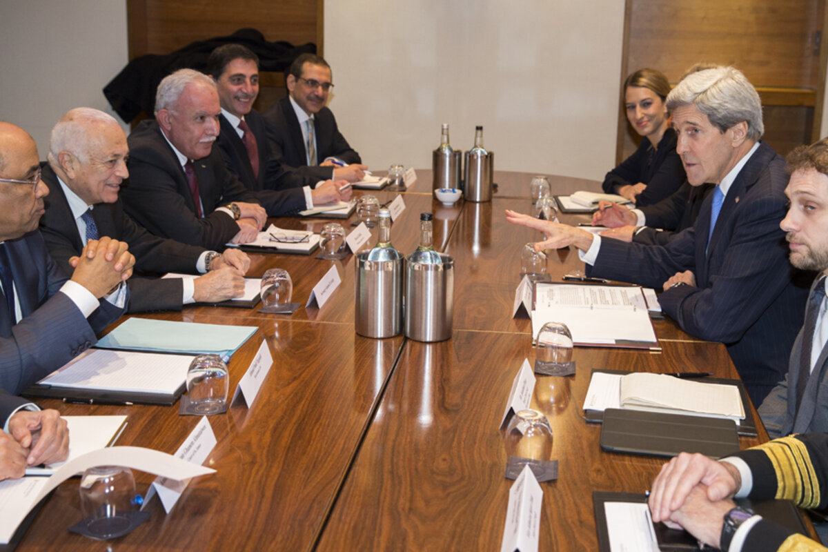 "Right now we're trying to have a constructive conversation with everybody to find the best way to go forward in order to create the climate, the atmosphere, the political space if you will, to be able to go back to negotiations," Kerry told reporters in London, the last stop on a three-nation European trip devoted to Mideast diplomacy.
