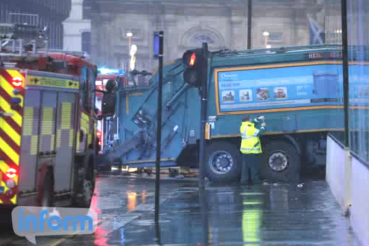 Television images showed a large green truck at a standstill by buildings outside Queen Street train station.