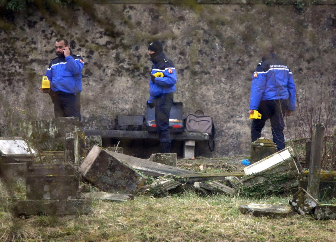 Hundreds of Jewish tombstones were found vandalized in eastern France on Sunday, hours after a Danish Jew guarding a synagogue in Copenhagen was shot to death. Frenchmen have been accused of three deadly attacks on Jewish sites since 2012: one at a school in the southern city of Toulouse, another at a museum in Brussels and finally one at a kosher market in Paris last month. Twelve people have died in total.