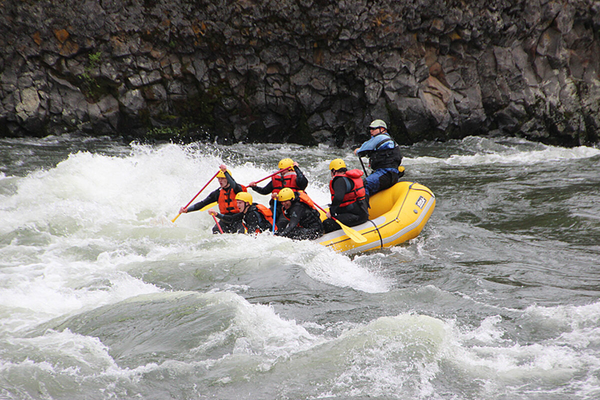 With waves splashing up the sides of their yellow rafts, 10 youngsters wearing black wet suits and life jackets paddle down a swift and choppy Spokane River, laughing and smiling as they go.