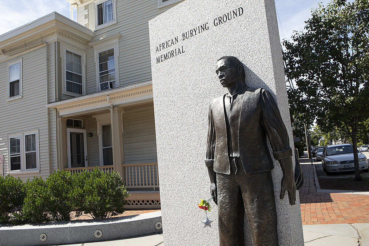 Through decades of digging alone in church basements, archives, and courthouses, Ms. Cunningham laid the foundation for the Portsmouth Black Heritage Trail, which turns 25 next year and includes a large memorial for the 18th-century African Burying Ground. By the 1800s, the burial site had been built over and forgotten, but now visitors to this seacoast city can find it alongside a residential block and pause to contemplate the striking sculpture of an African woman and man who stand back to back against a granite slab, their hands almost touching. And when tourists walk by famous mansions of white historical figures, they also see plaques about the black men and women who labored behind the scenes.