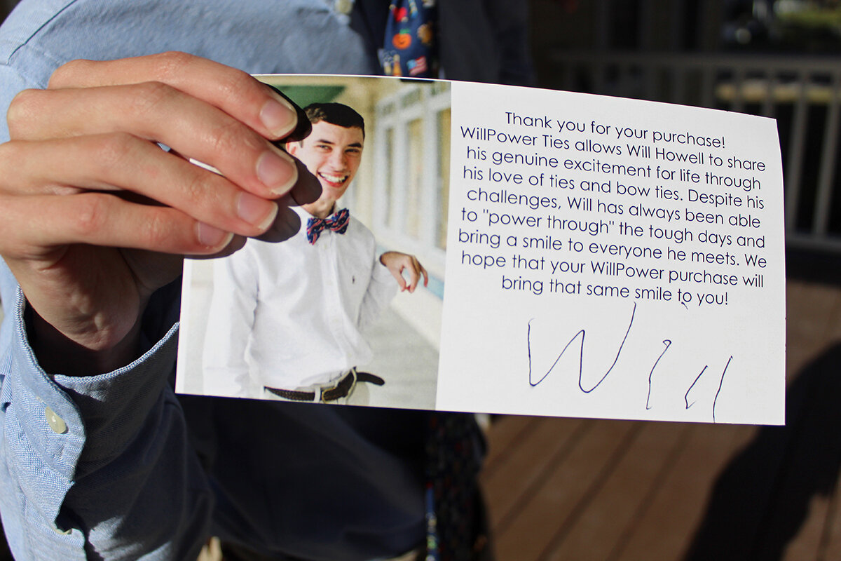 Hearing about the talk, 鈥渨e immediately started thinking, 鈥榳hat could Will do?鈥欌 says Melanie Howell, his mother. 鈥淲e landed on his love of ties.鈥 Her husband, Carey, sold his convenience store to go into business with his son.