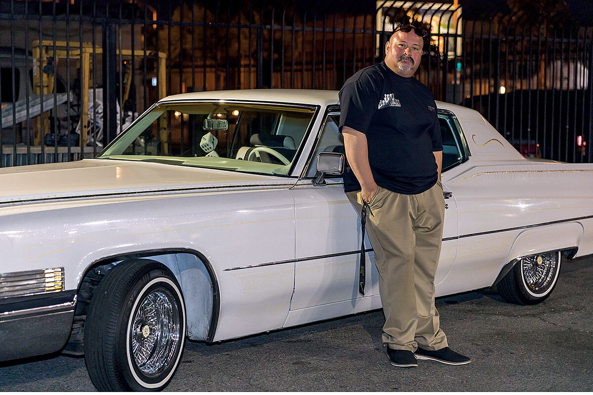Born in Boyle Heights and raised in South Los Angeles, Mr. Ramirez spends his days working as a welder and his nights cruising Whittier Boulevard with his wife and three kids. He drives a long, white, and spotless 1970 Cadillac Coupe deVille named Sugar.