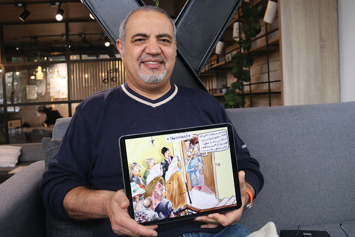 “Satire is a wonderful universal language that promotes awareness, laughter, and understanding,” he says, putting the final touches on an Abu Mahjoob cartoon on his iPad. “And we all need a smart laugh now more than ever.”