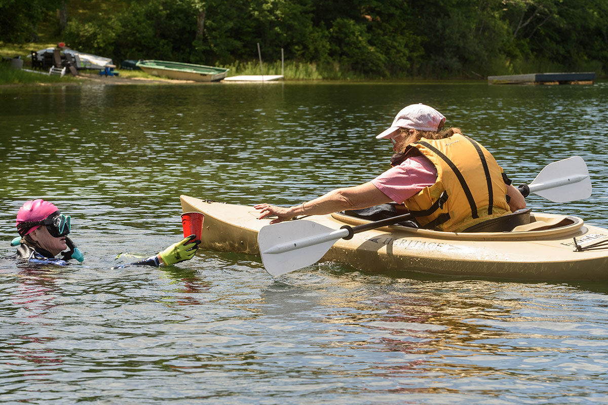 The cleanups, he adds, have doubled as community events. Dozens of people come out to watch the swimmers work. “What they provide is a tremendous service that any pond would benefit from,” Mr. Donahue says. “And not just from the physical aspect of it, but the community aspect of it, because of their joy and their energy in what they do, and their belief in what they’re doing.”