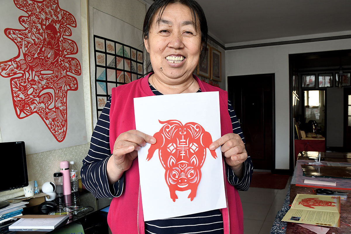 鈥淲e were very poor, and when it was time to celebrate the [Lunar] New Year, we all put paper-cuts in the windows,鈥 she says, recalling the holiday at her childhood home 鈥 a cave dug from a hillside 鈥 where her family of 10 eked out a living growing corn, beans, and sorghum. 鈥淓veryone did paper cutting,鈥 she says, referring to village women.