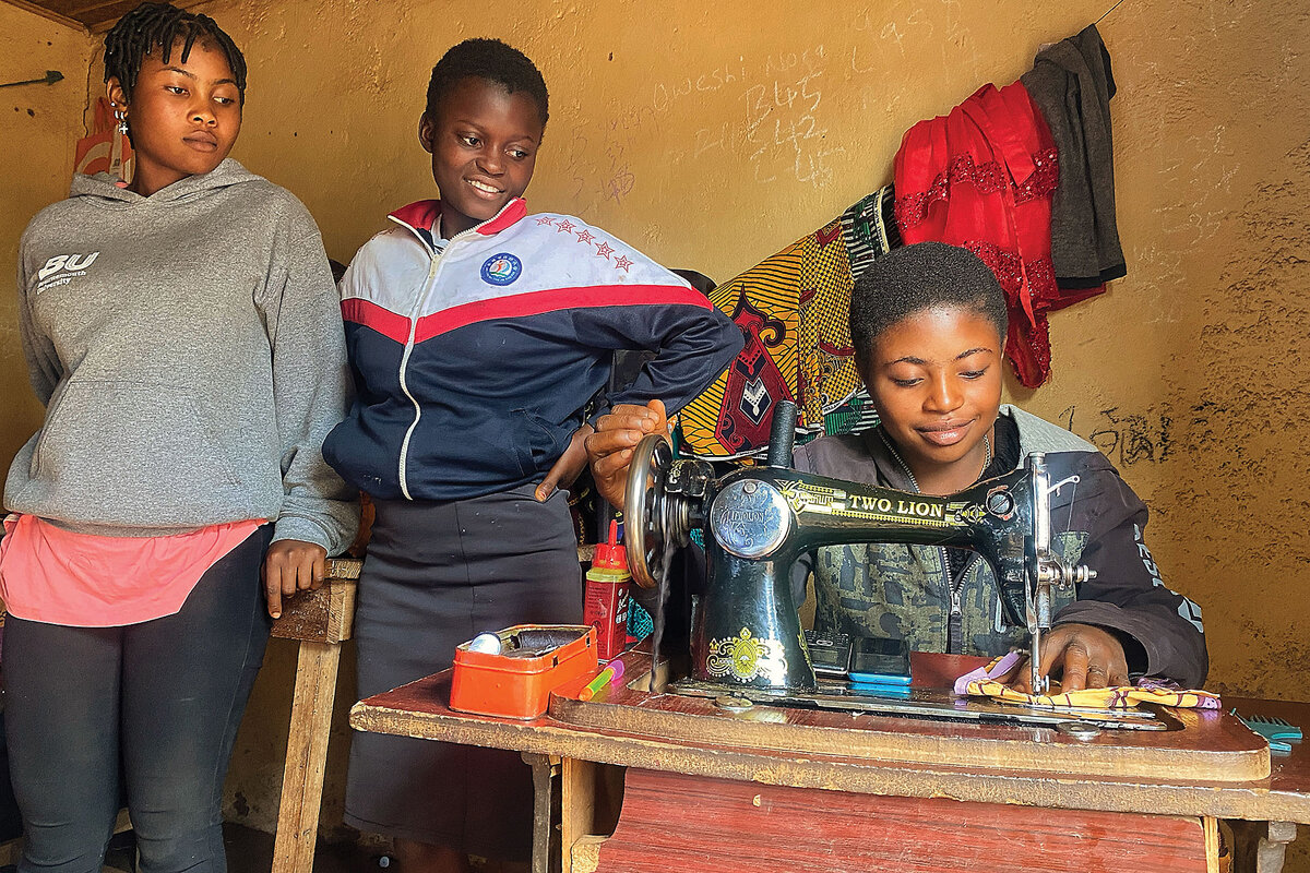 Atumoga Rose and three other young women are seated at sewing machines in a mud-walled shop with reams of scrap fabric strewn about the floor. They are working through basic sewing patterns under the watchful eyes of an older woman they call Auntie. As Ms. Rose slides a piece of fabric away from her machine using a pair of scissors, she flaunts her stitchwork to Auntie like a trophy. “I’ll be perfect soon,” she says with pride, while the other young women laugh in solidarity.