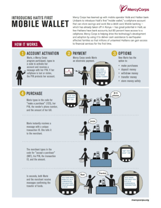 For many Haitians, mobile money can open a door to personal choice. Mercy Corps has used mobile money to distribute food aid to families across Haiti and deliver payments from its . Instead of spending hours waiting in line for a cash payment or a food ration, Haitians receive a wireless money transfer on their phones once a month.