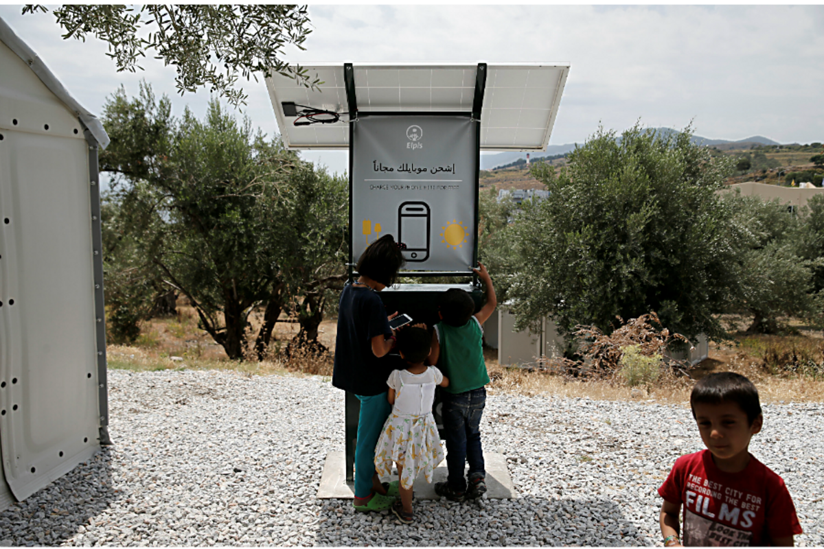 Sun-powered phone charger helps migrants in Greece