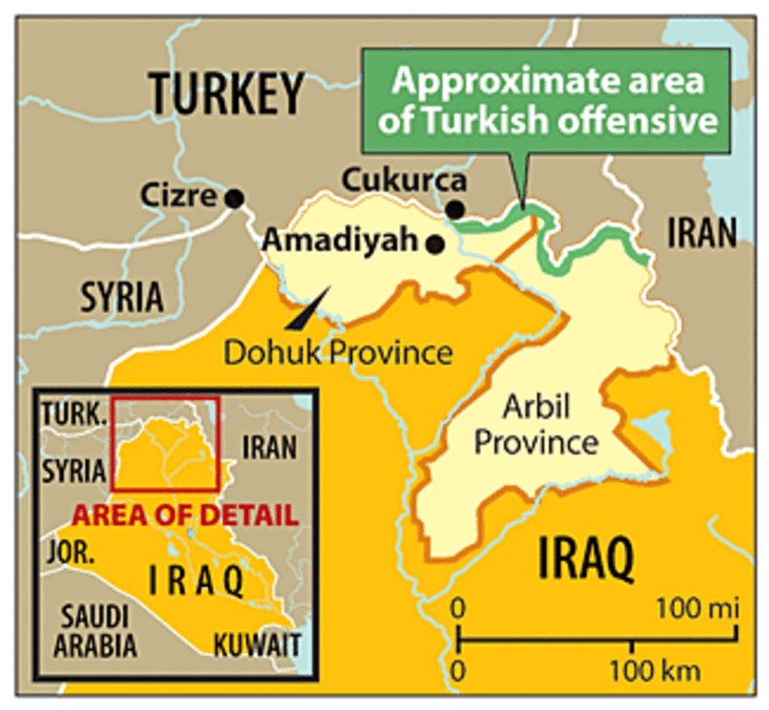 Over the past few days, many Iraqi Kurds have held street protests against the Turkish offensive. "We feel the Turkish aggression is a veiled threat to us not to implement Article 140 or to postpone it," says demonstration organizer Aziz Omar, referring to the article of the Iraqi Constitution that calls for a referendum on the status of the oil-rich city of Kirkuk. Kurds, who have a significant presence in the ethnically and religiously mixed city, insist it should be part of their semiautonomous region. Kirkuk is also home to Turkmen, who have ethnic and historic ties to Turkey. They oppose Article 140.