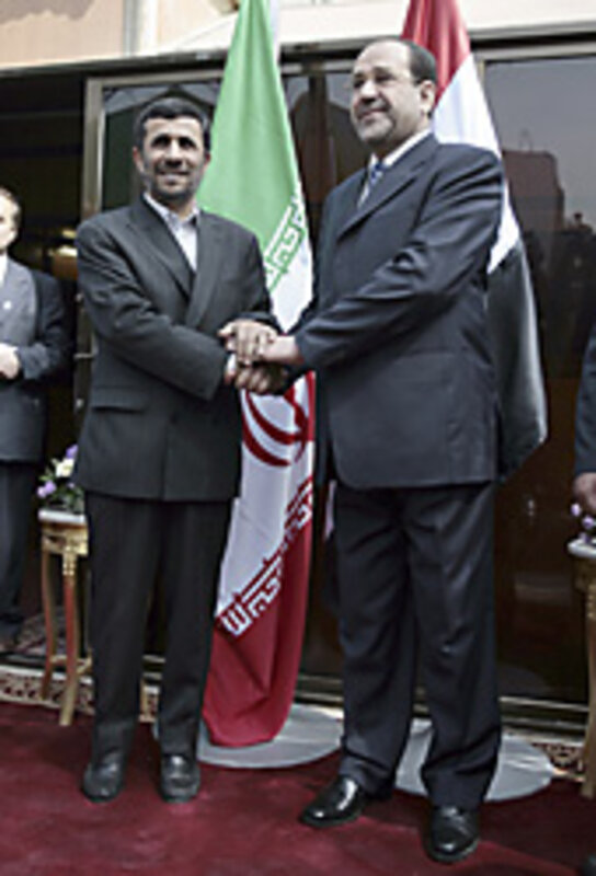 But Mr. Maliki hailed Iran's contribution to improved security. "I can honestly say that the Islamic Republic's recent position has been very helpful in bolstering security and stability," he said. He urged Arab states, who barely have any ties with Iraq, to look at Ahmadinejad's visit as a "model."