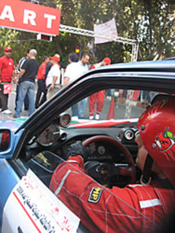 Driving an electric blue 1983 BMW M-Series with a "Baby on Board" sign on the rear windshield, Nablus's favorite son Jamal Tuffaha admitted to a case of pre-race butterflies.