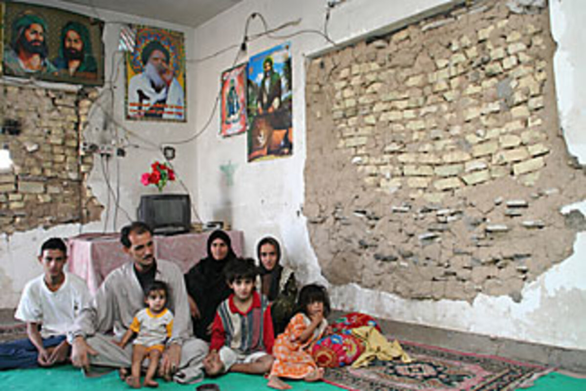 Nadhim Salman and seven members of his family squat in a crumbling two-room structure, part of a former Army barracks in one of the poorest neighborhoods in Maysan's capital Amara.