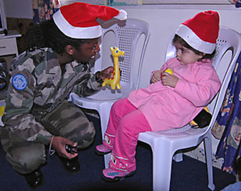 Ten toddlers at a nursery school in this southern Lebanon village had a surprise visit from an unlikely version of Santa Claus this week when French United Nations soldiers dressed up to hand out Christmas gifts.
