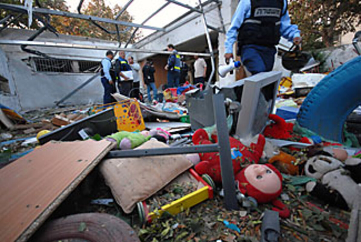 Just like the half million residents of southern Israel in the reach of Hamas's Katyusha rockets, the former settlers are adjusting to a new reality of intermittent warning sirens and a desperate scramble for cover. Schools have been canceled, businesses have pared back operations, and emergency workers have been put on a permanent state of alert.