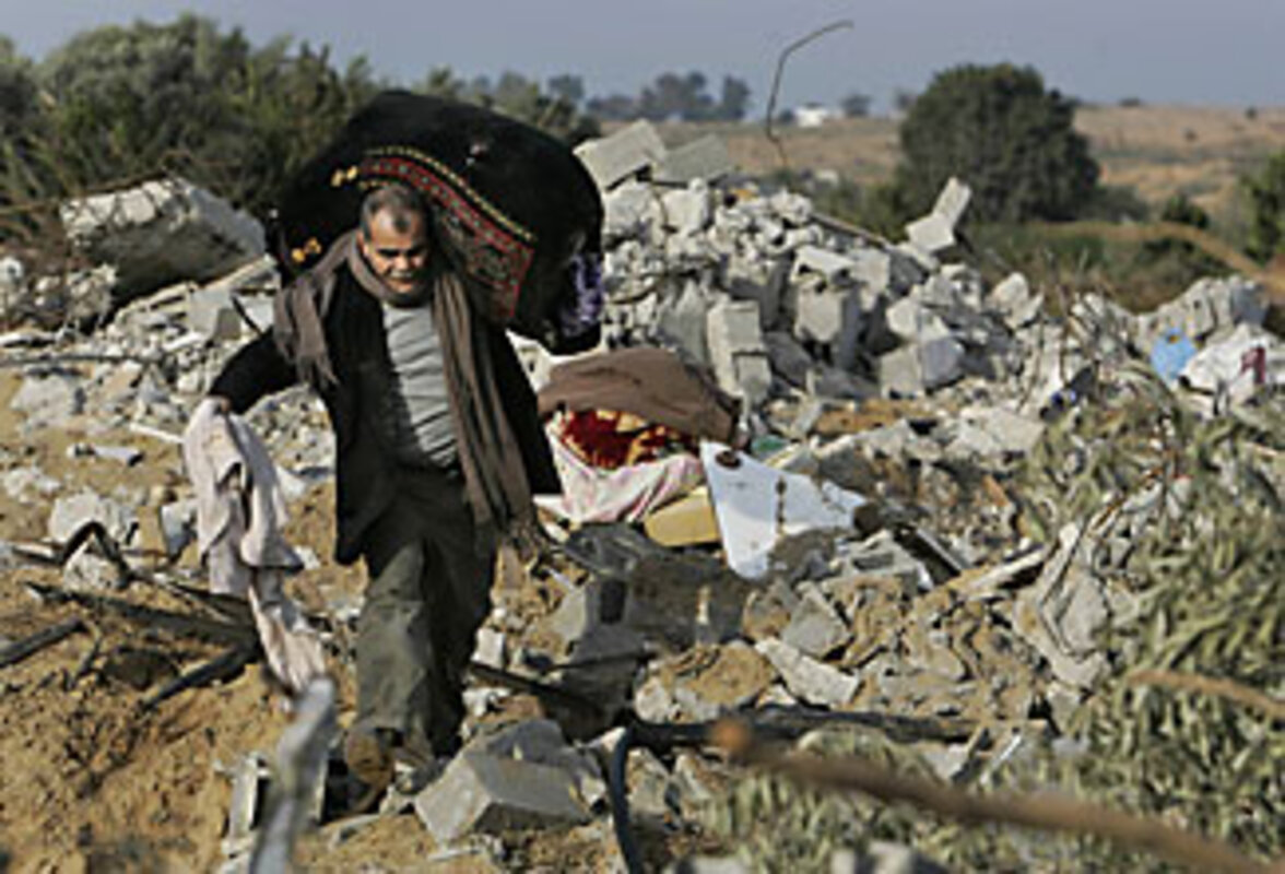 In the center of Gaza City, most ministry buildings are in tatters. Even the parliament building is destroyed. Some Palestinians who became internally displaced during the crisis are finding that they have no homes to go back to. Gazans are still finding food, fuel, and cooking gas in short supply, and many were still without electricity. A Hamas official in Gaza said 5,000 homes, 16 government buildings, and 20 mosques were destroyed, and another 20,000 houses damaged, Reuters reported. Saudi Arabia has pledged $1 billion in aid to help Gaza rebuild. Palestinians put the total cost of damage at $1.9 billion.