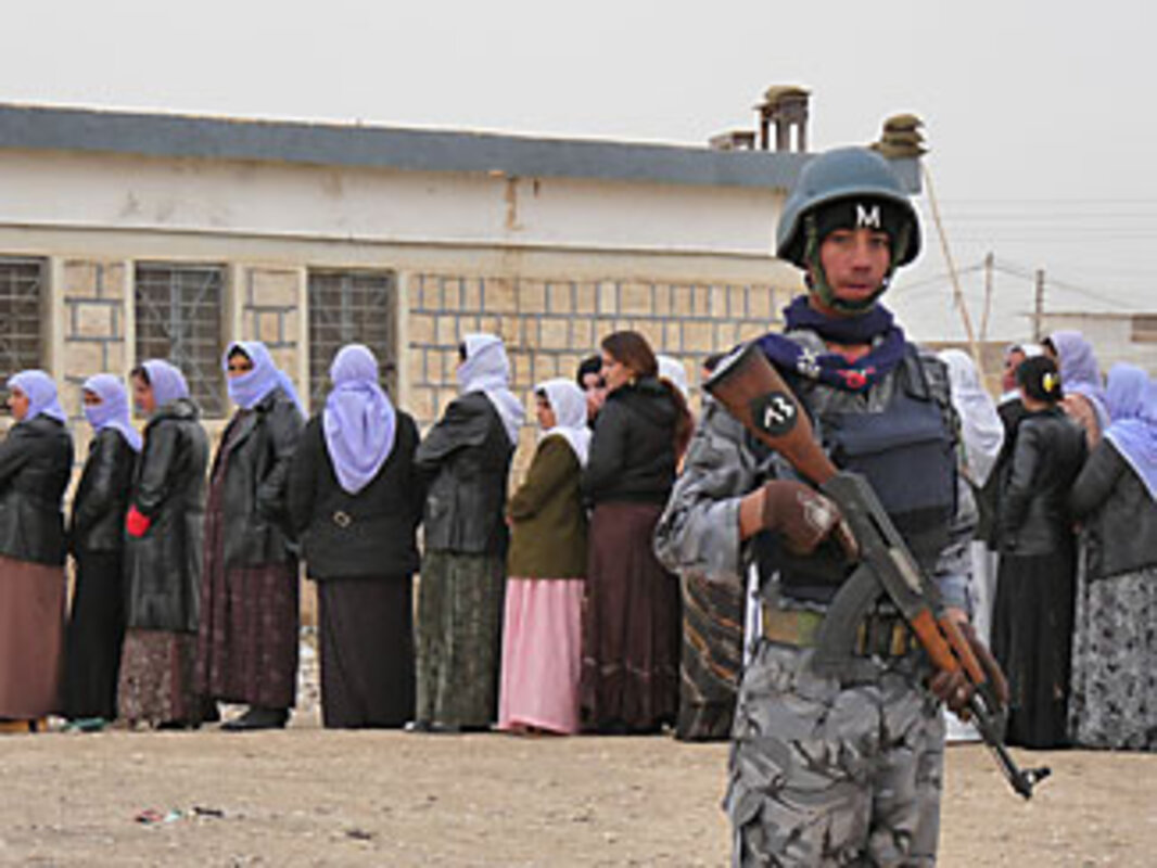 "The Kurds are very good to us 鈥 they help us with salaries, they provide services," says Khalaf Khatha Khalaf, waiting to vote for the first time.