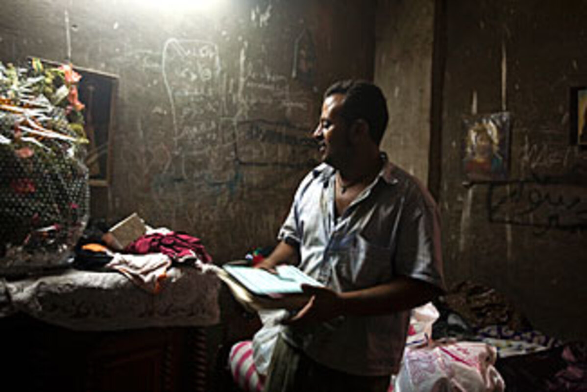 Qadees, who is 26, has worked in garbage since he was 8 years old. Every day he walks the fetid slum streets buying plastic bottles from other zebaleen for 17 cents a kilo and selling them to recycling centers for 19 cents. Before the pigs were killed, he also had a night job unloading a neighbor's garbage truck.
