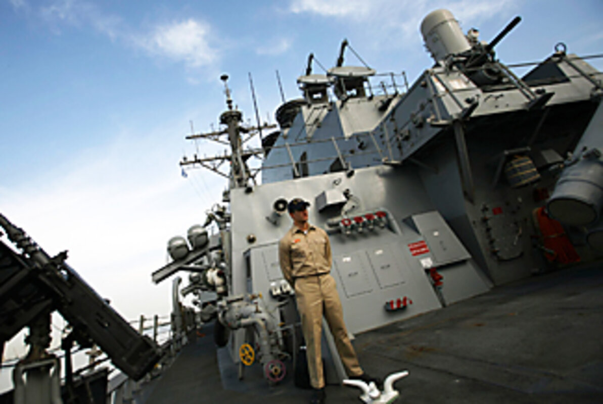 If a missile were incoming now, explained Lt. Jason Watson, a combat systems officer, "all we need to do is find it and put another hunk of metal moving at supersonic speeds into that missile."