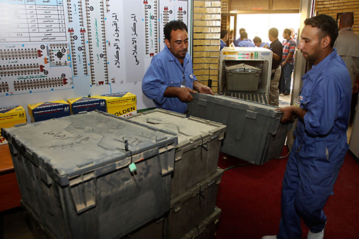 Iraqi election workers began tallying votes from 47,000 polling stations across the country Monday, a day after the country pulled off a landmark vote despite dozens of scattered explosions that went off in Baghdad and in other parts of the country.