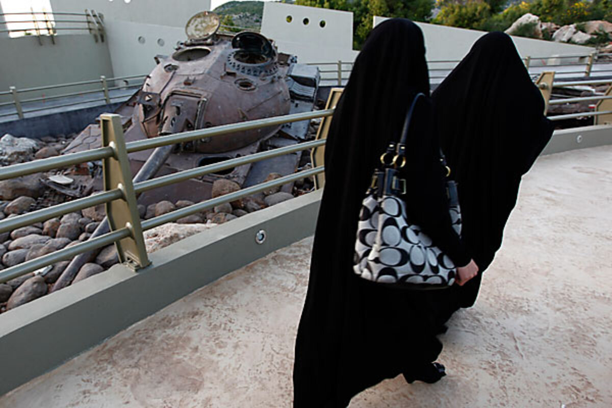 The sprawling Hezbollah tourist site at Mlita, which opened to the public Tuesday, covers a mountain top smothered in dense bushes and stubby oak trees. It was a secret front-line base for the guerrillas during the years of Israeli occupation. Hundreds of visitors gaped at the symbolic displays of smashed Israeli tanks. Children scrambled over upturned armored personnel carriers. Pathways wind beneath the canopy of oak trees and camouflage netting revealing displays of weaponry, including top-range Kornet antitank missiles and RPG-29 rockets used by Hezbollah in the 2006 war.