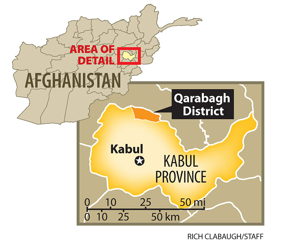 Qarabagh is about an hour's drive north of Kabul and the district nestles up against the vast US military base at Bagram. But once off main roads and on the dirt tracks that rumble along Soviet-built irrigation canals and dry riverbeds near the summer camps of nomads, it feels a world away. It's dominated by multifamily, mud-walled compounds, where the remains of Soviet bombs have been fashioned into fences to keep goats out of gardens and grape orchards.