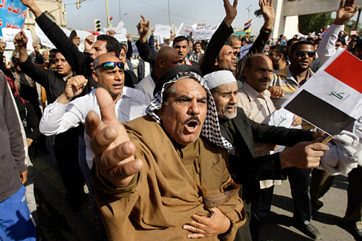 The Iraqi government on Thursday gave Baghdad residents only a half-hour鈥檚 warning that, starting at midnight, vehicles would be banned from the roads until further notice. Despite the measure, demonstrators walked for hours today to reach Tahrir (Liberation) Square. Police estimated a turnout of up to 4,000 people. Eight years since Saddam Hussein was toppled, many Iraqis say their lives are still almost as difficult now as they were then.