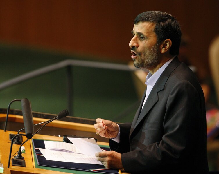 Iranian President Mahmoud Ahmadinejad addresses the United Nations General Assembly at the UN headquarters in New York in 2009.