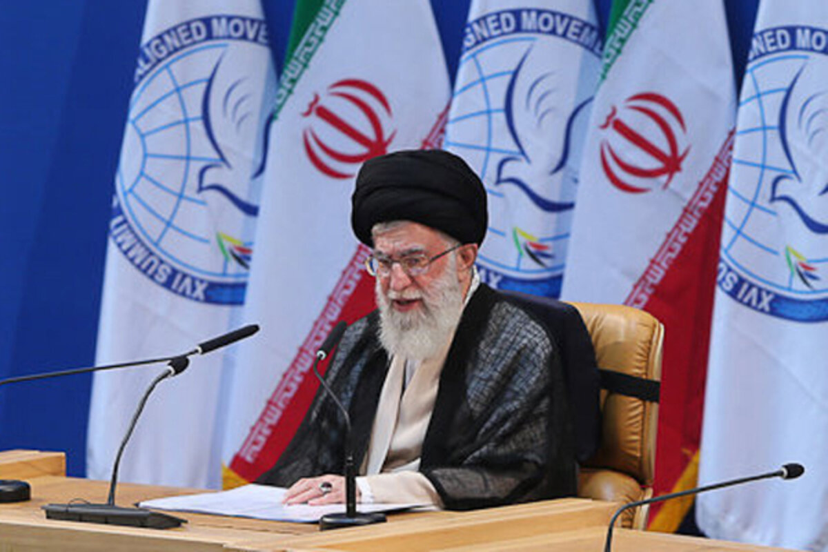 With United Nations Secretary General Ban Ki-moon and dozens of world leaders and government ministers in attendance, Iran's supreme religious leader rejected use of nuclear weapons as an "unforgivable sin" and lambasted the US, Western powers, Israel, and the "spread of the instruments of hegemony."
