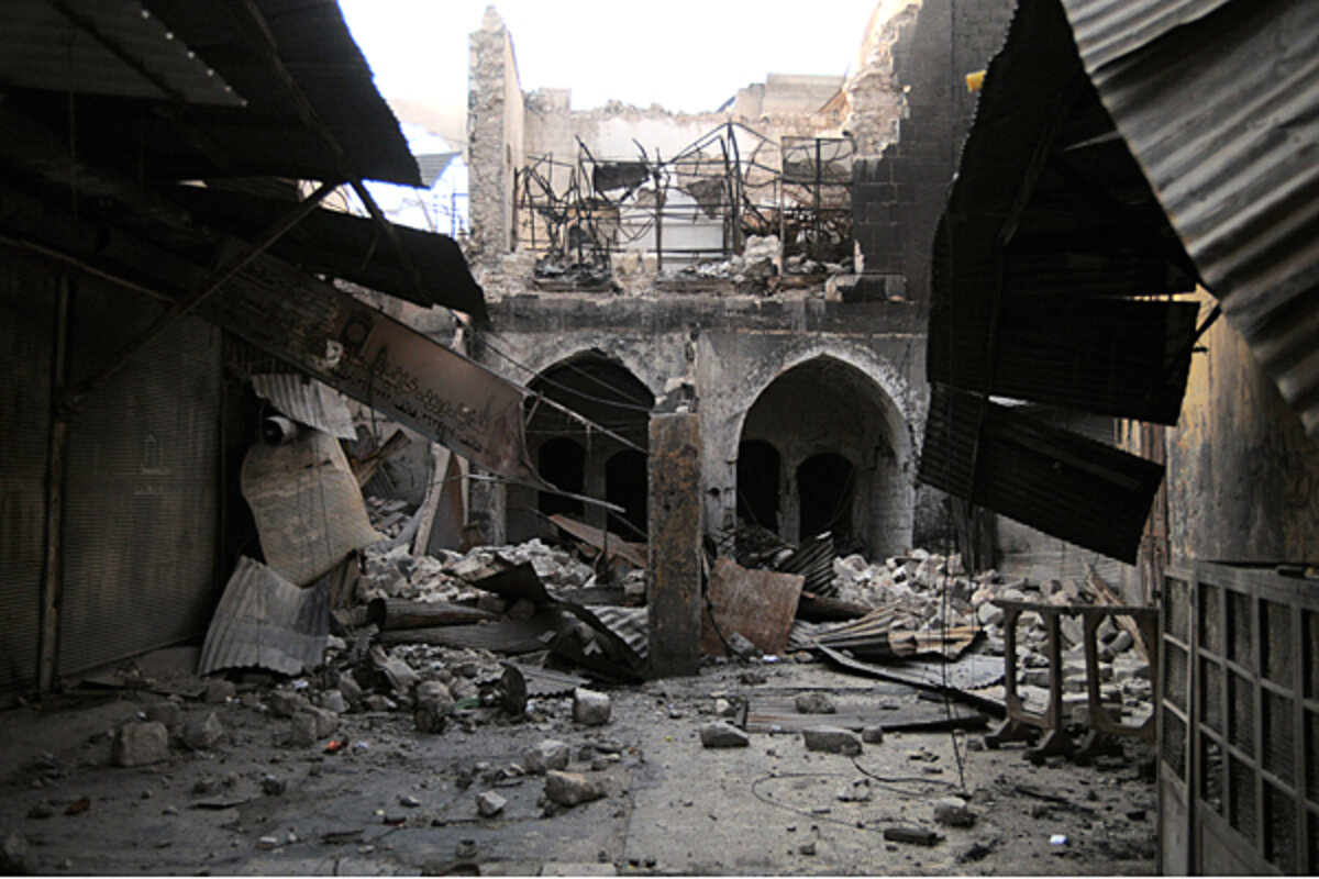 In neighborhoods where rebels battled regime forces, apartment聽buildings lie in piles of rubble, the strewn personal belongings the聽only trace of former inhabitants. When rebels push the front line聽forward several blocks, capturing new territory, residents come back聽to retrieve what they can salvage of their belongings. They push carts聽loaded with washing machines, or drive trucks piled with mattresses聽and furniture through the rubble, relying on rebel checkpoints to help聽them avoid sniper fire.