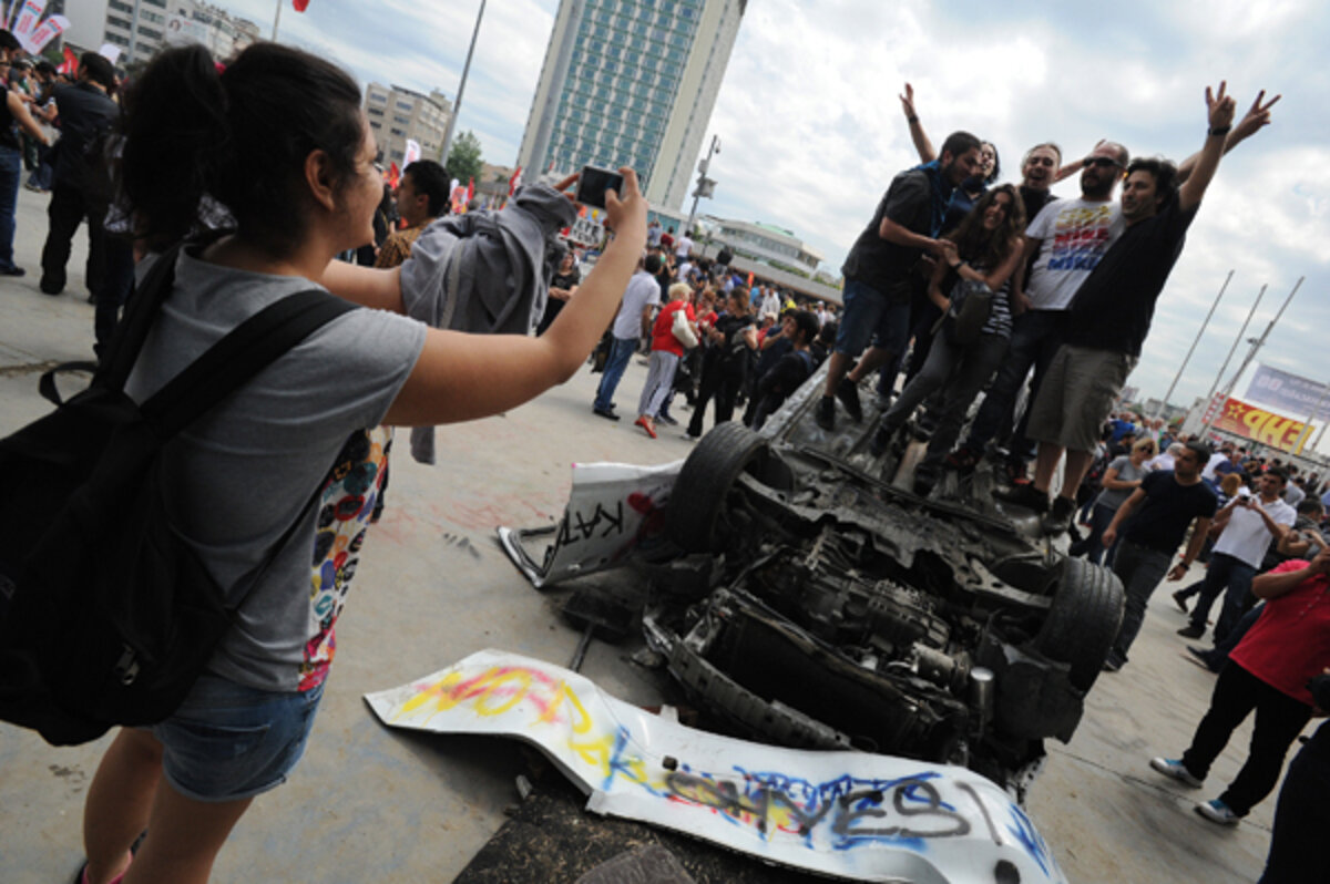 鈥淥ur prime minister is like a fascist. He takes everything he wants, but we are standing up, we want our rights, and I am very happy for that because with this AKP government they have been pushed down,鈥 says a middle-aged housewife named Derya, who was taking photos with her husband beside an overturned police car.
