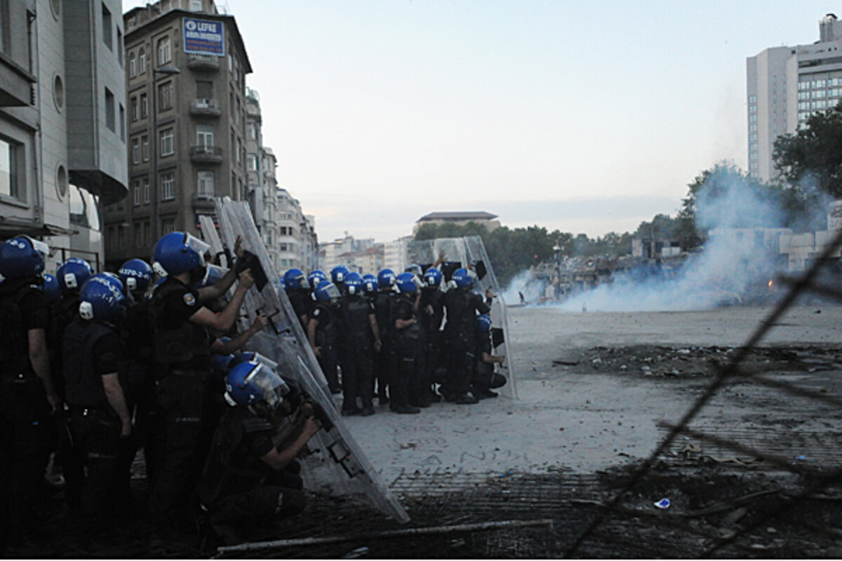 However, police stormed into Taksim early yesterday morning.聽Initially government officials said the police would leave protesters alone and only remove the banners they鈥檇 hung on public buildings, but the situation soon turned violent, with police firing tear gas and rubber bullets at demonstrators who hurled back stones, fireworks, and Molotov cocktails until almost聽5 a.m.