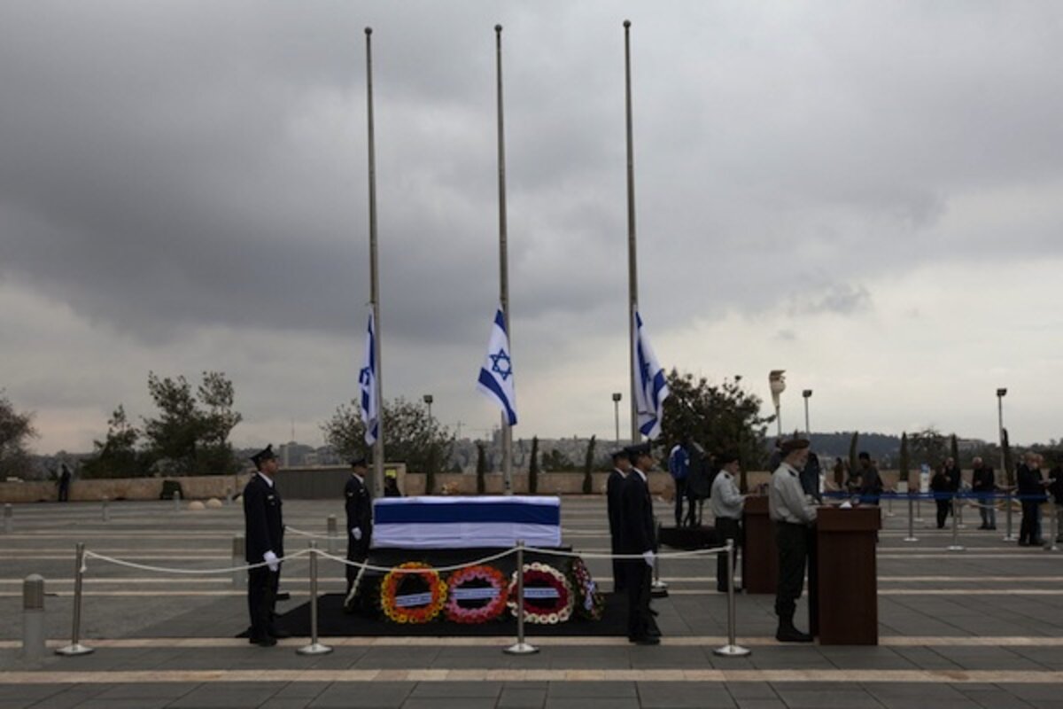 President Shimon Peres and former Prime Minister Ehud Olmert, who succeeded Sharon after the 2006 stroke, was among the visitors. Olmert crossed past a roped-off area to stand silently next to the flag-draped coffin.