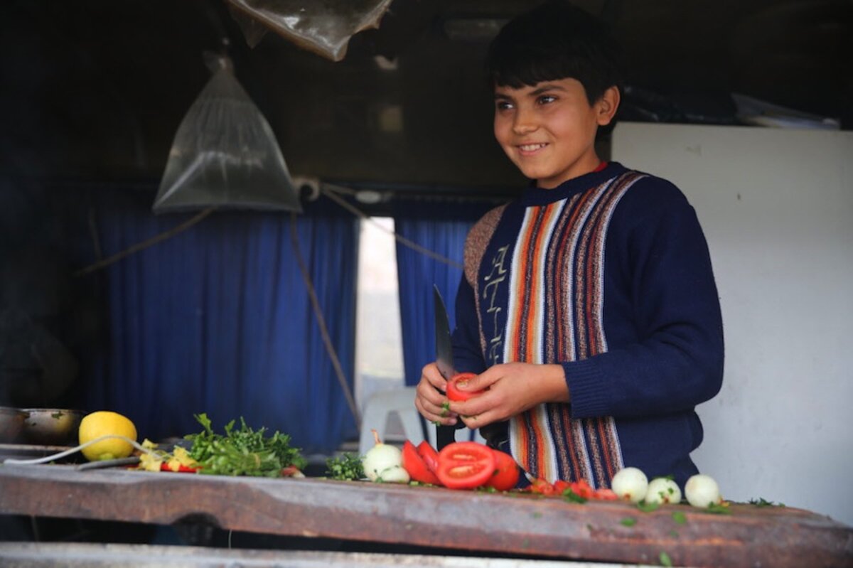 Children like Ibrahim from Idlib work to close that gap. The 13-year-old skips cooks up a storm in a rickety minivan owned by a Turk.聽He skips school to work 10-hour days, chopping coriander, tomatoes, and onions with the speed of a master chef. His signature dish is a spicy kebab, but he prefers the simpler taste of mom鈥檚 lentil soup.