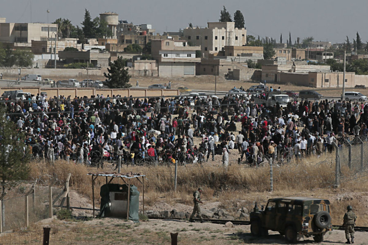 At the Akcakale border crossing, an Associated Press team witnessed hundreds of Syrians, many of them with suitcases and other belongings, standing on the other side. At one point, a group of armed, masked men 鈥 likely IS militants 鈥 approached them and ordered them to return to the town. Fearful, many of them turned back, only to return after about 15 minutes.