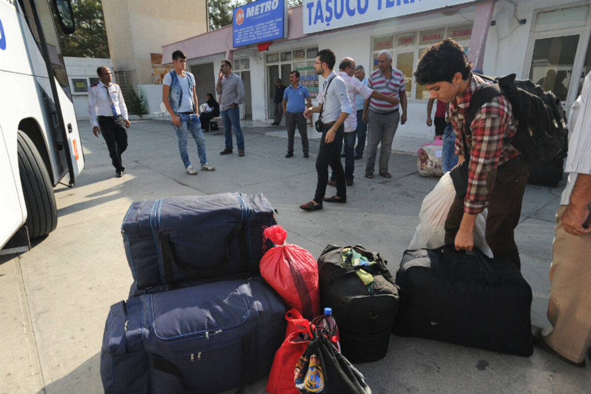 Wrestling taped-up duffle bags onto a bus in the Turkish port town of Ta艧ucu, Mohamed tries to explain why he chose now to leave his home and become a refugee.