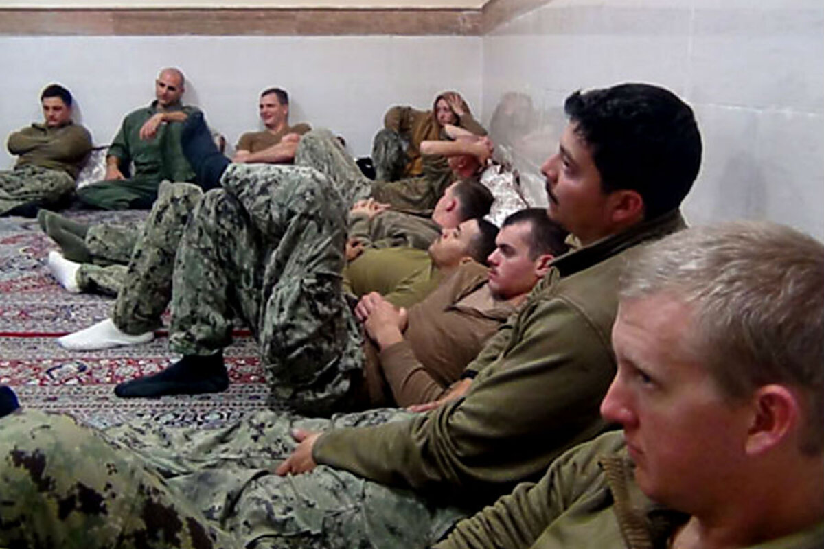 The Revolutionary Guard's official website published images of the detained U.S. sailors before their release, showing them sitting on the floor of a room. They look mostly bored or annoyed, though at least one of the sailors appears to be smiling. The sole woman had her hair covered by a brown cloth. The pictures also showed what appeared to be their two boats.
