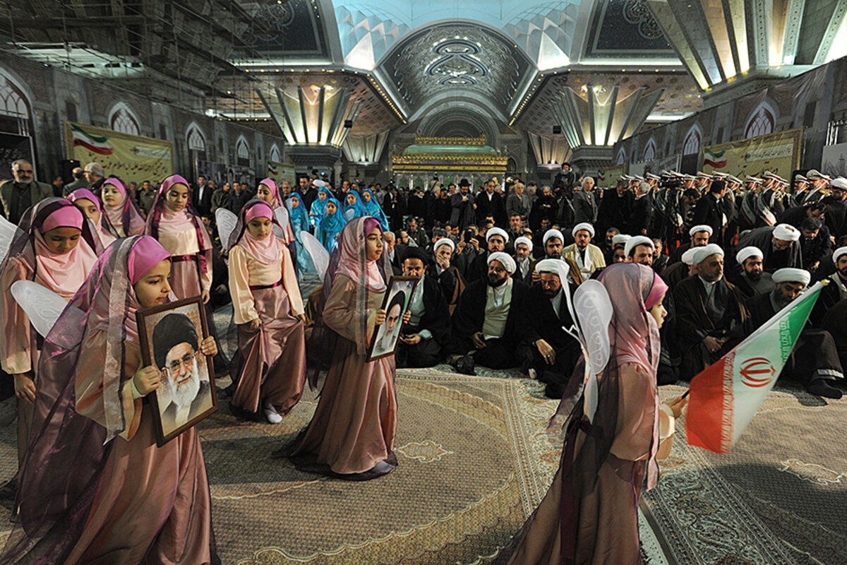 In the vast gilt-domed shrine housing Khomeini鈥檚 remains south of Tehran, girls wearing wings and boys in taekwondo outfits waved Iranian flags. Amid chants of 鈥淒eath to America,鈥 officials, clerics and police and military units knelt on the carpeted floor to reaffirm their revolutionary path.