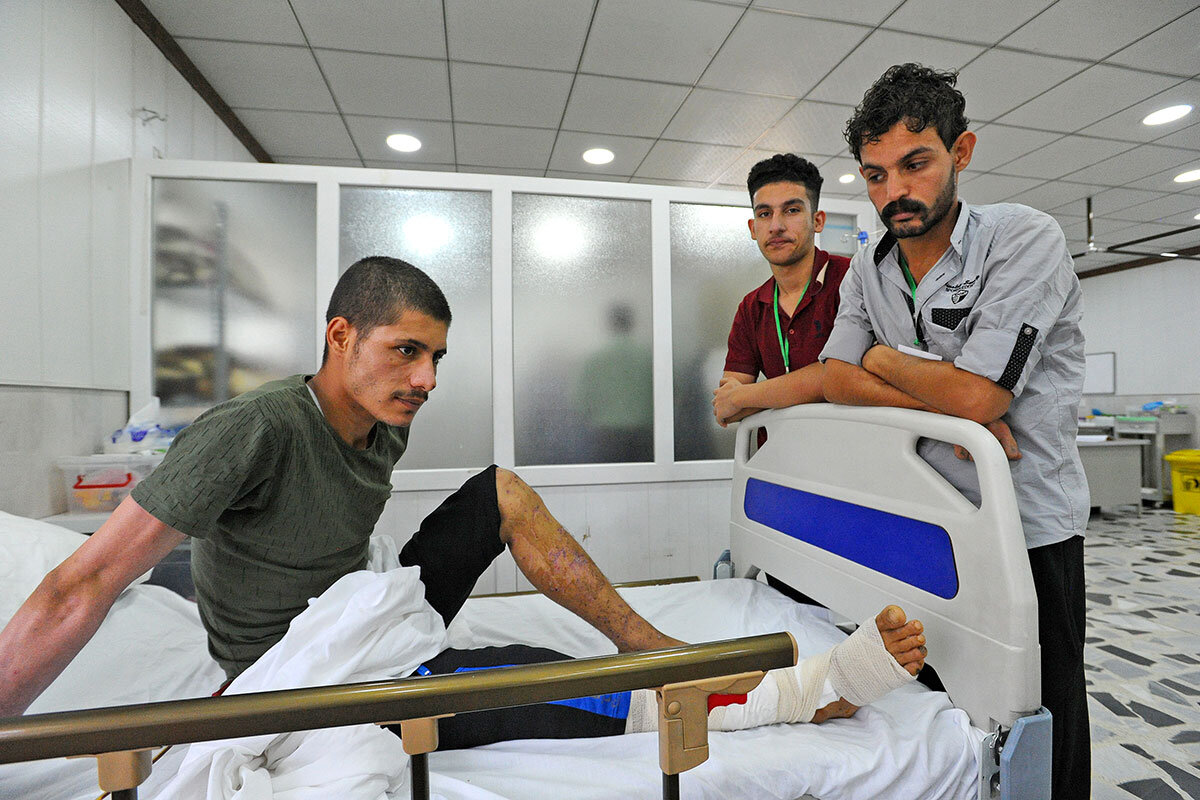 鈥淚 don鈥檛 think you will find another war like this anywhere else in the world, like Mosul, with fighters in tunnels, snipers, and chlorine gas,鈥 says Ali, as the others nod in agreement. He looks at the wounds of the men: 鈥淒isasters.鈥